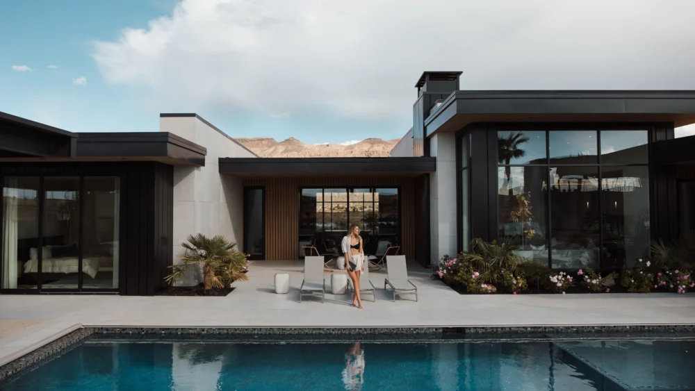 Utah’s desert landscape is beautiful, but it’s not exactly forgiving when it comes to finishes. Anything too polished or “manufactured” can feel out of place fast. This home was designed to blend seamlessly into its surroundings, featuring modern architecture, warm tones, and materials that evoke a sense of groundedness.